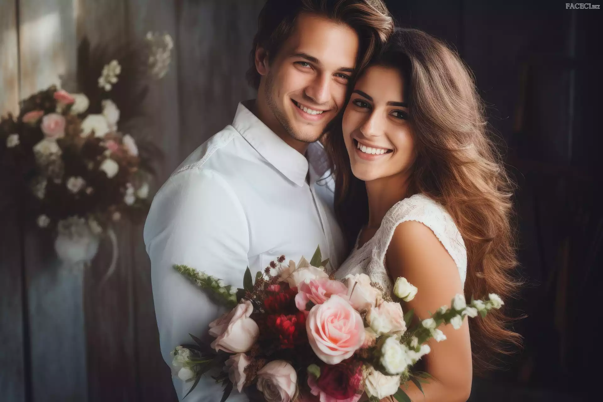 Kobieta, Kwiaty, Mężczyzna, Miłosne, Para - faceci.biz